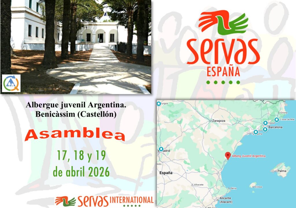 Los próximos días 17, 18 y 19 de abril se celebrará la Asamblea de Servas España. Este año tendrá lugar en el municipio de Benicàssim (Castellón) en el Albergue Argentina. (Para miembros de Servas)