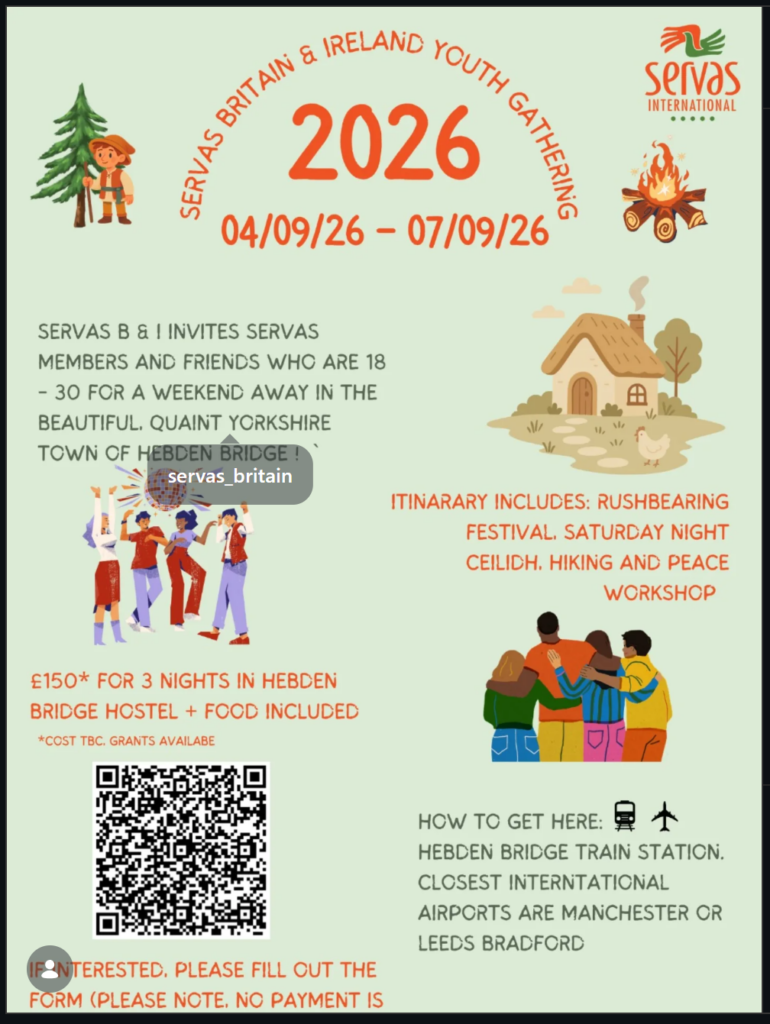 The Servas Youth Gathering, organized by Servas Britain and Ireland will take place in the beautiful town of Hebden Bridge and is open to all Servas youth members aged 18 to 30.